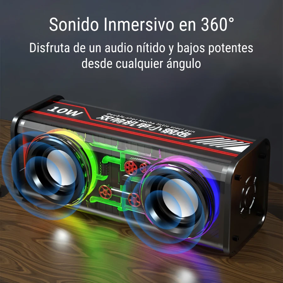Hasta 4 horazas de música sin parar🔋. Lo cargas por USB y te lo llevas donde sea.